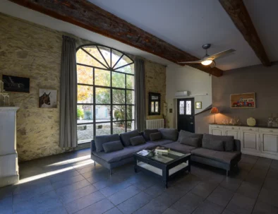 D’immenses baies vitrées s’ouvrent sur les trésors de la garrigue, avec vue sur l’Hortus, l’espace et le soleil. L’été, c’est la tonnelle qui fait office de salle à manger et de salon. L’hiver, la lumière baigne l’immense pièce à vivre participe à la joie des retrouvailles autour de la grande cheminée.